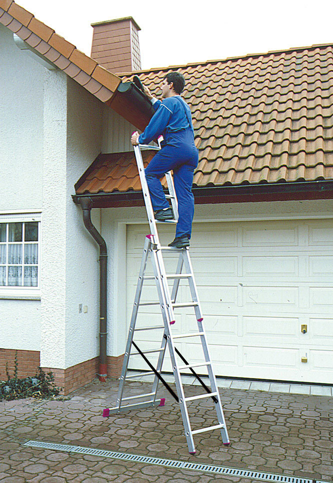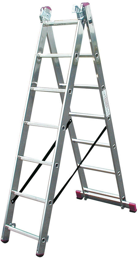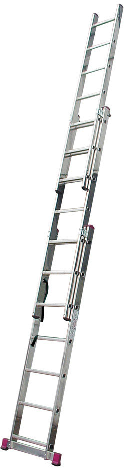 Алюминиевая трехсекционная лестница может быть использована как приставная и выдвижная лестница или как стремянка. Максимальная нагрузка 150 кг. Вес 9.8 кг.