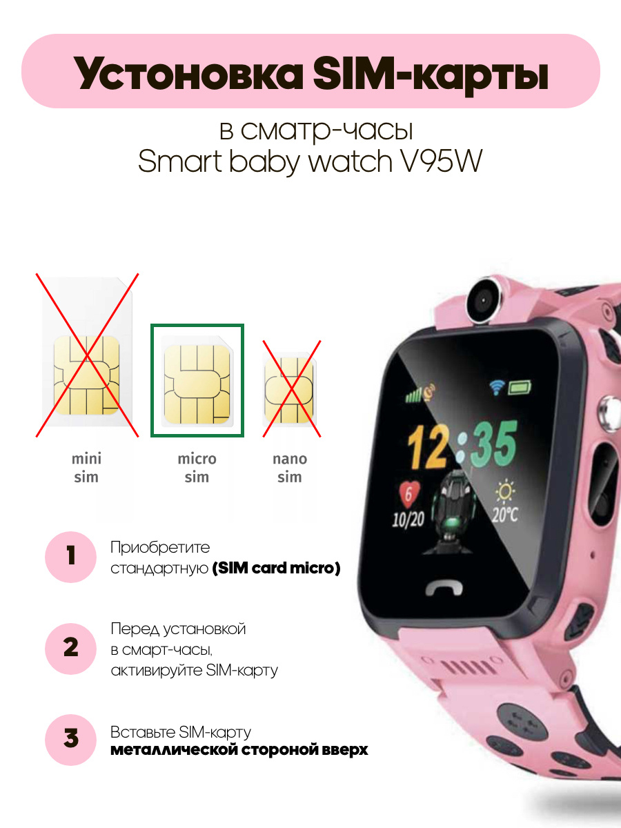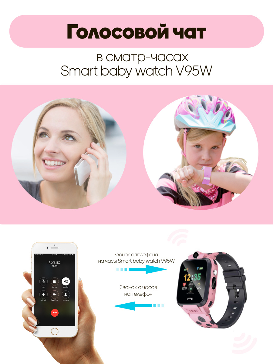 Умные детские Смарт Бэби Вотч часы Smart baby watch V95W, Розовый