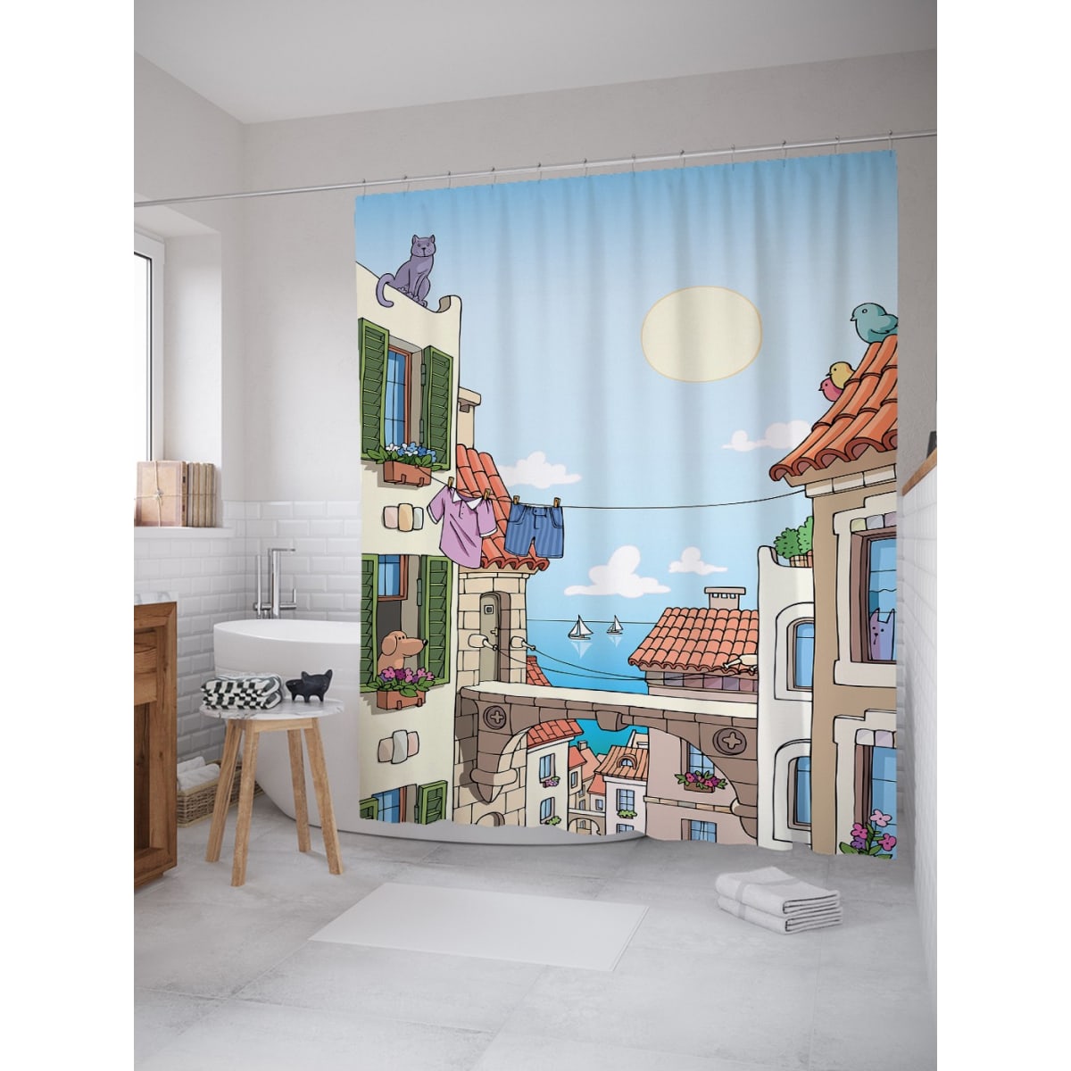 Шторка для ванной Ambesonne Портовая улица 180х200 см