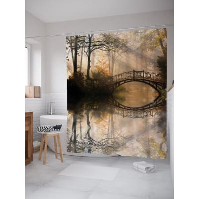 Шторка для ванной Ambesonne Заколдованный мост в лесу 180х200 см