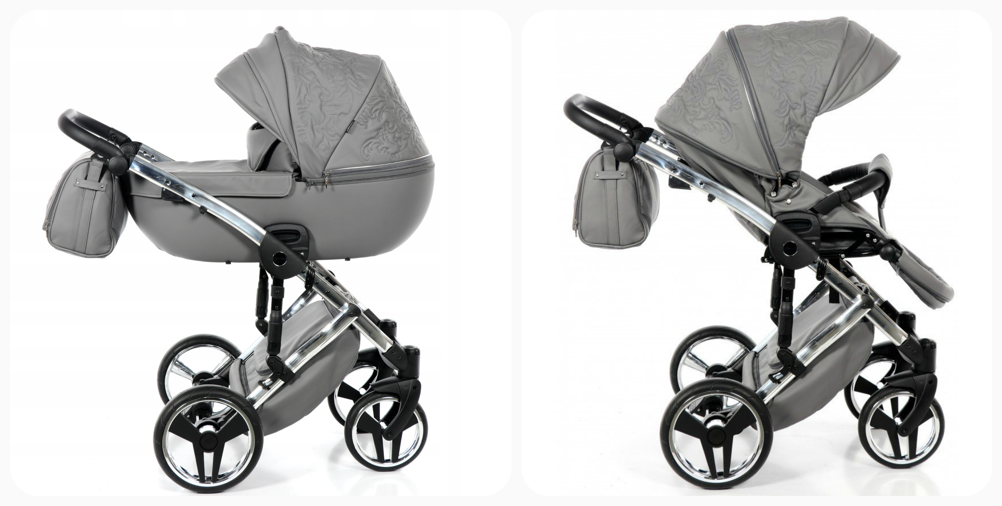 - Комплектация коляски шасси с колесами; накидка на ножки; дождевик; подстаканник; корзина; матрасик