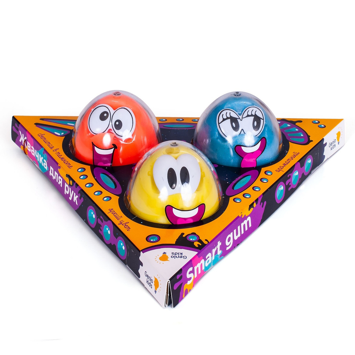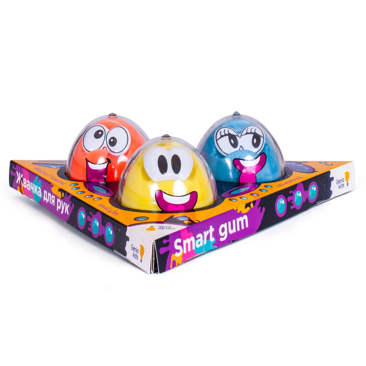• Комплектация 3 баночки со жвачкой для рук, 3 пары глаз.