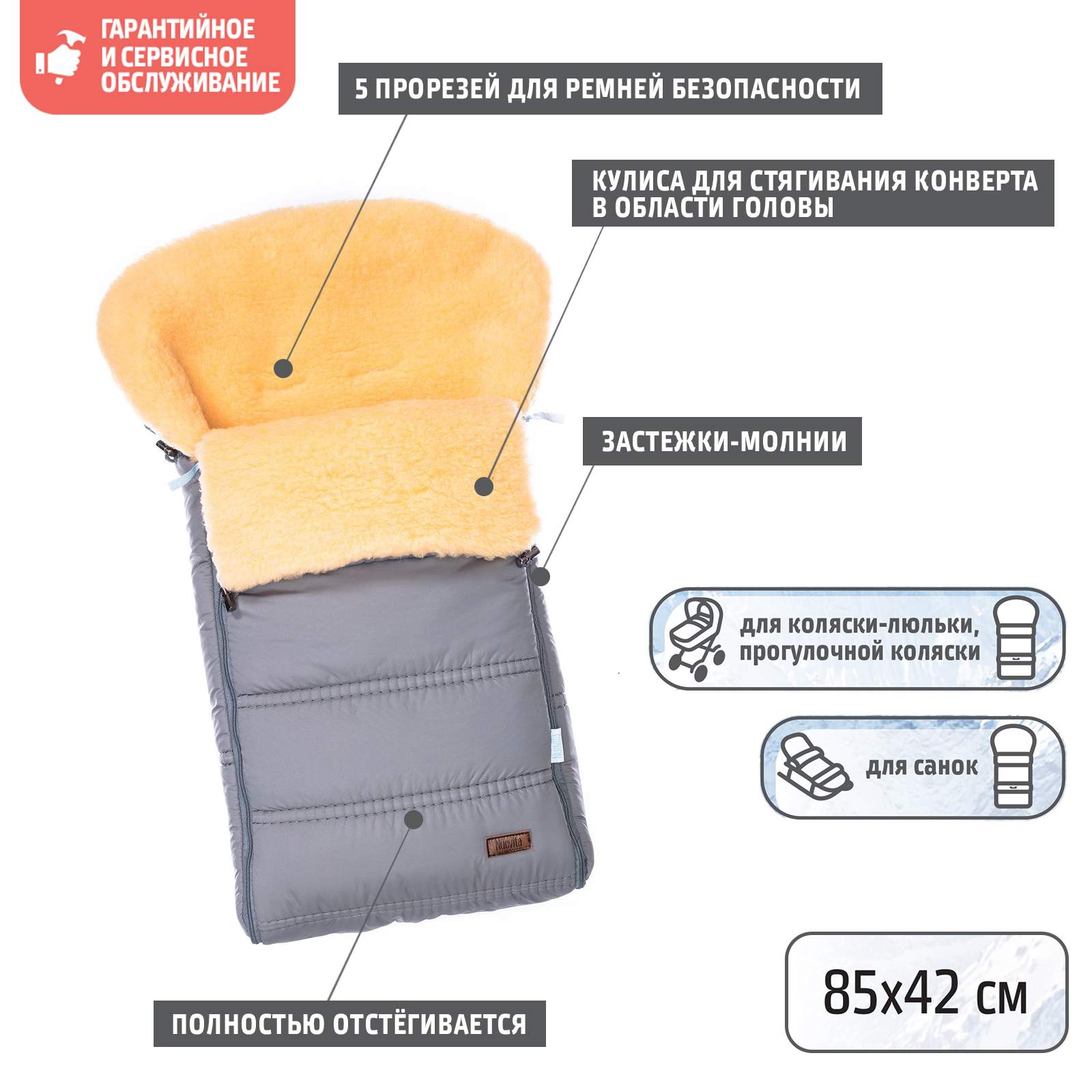 - Нескользящая ткань на нижней части конверта Нет