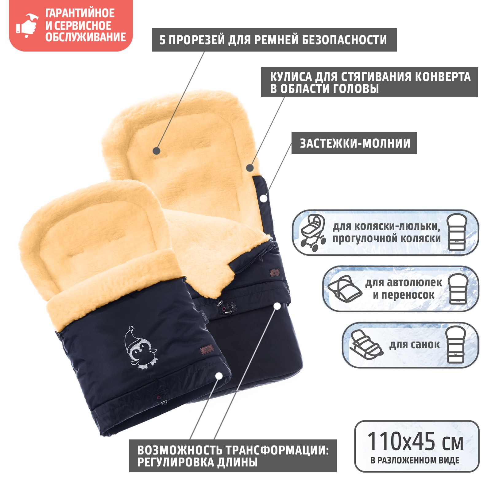 - Нескользящая ткань на нижней части конверта Нет