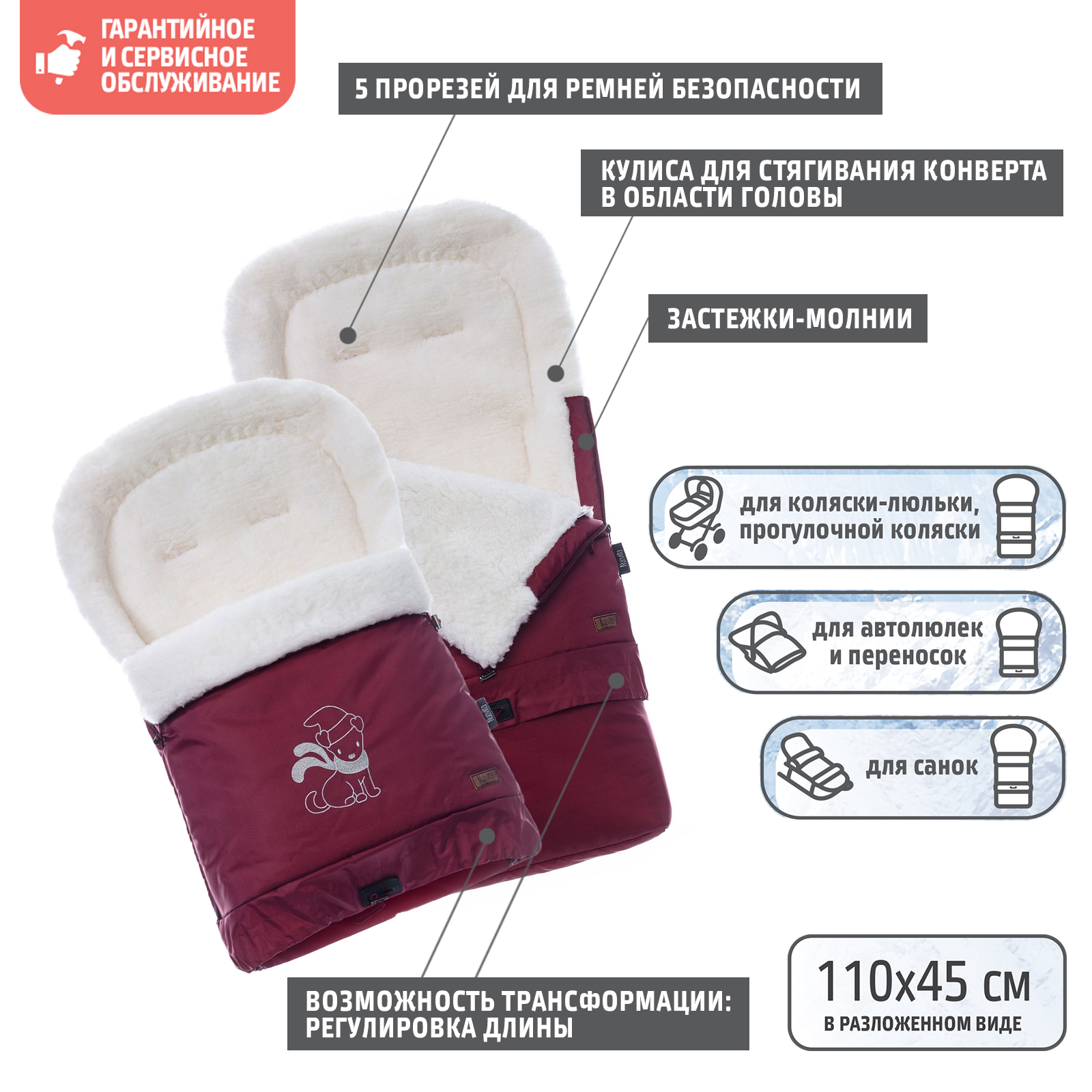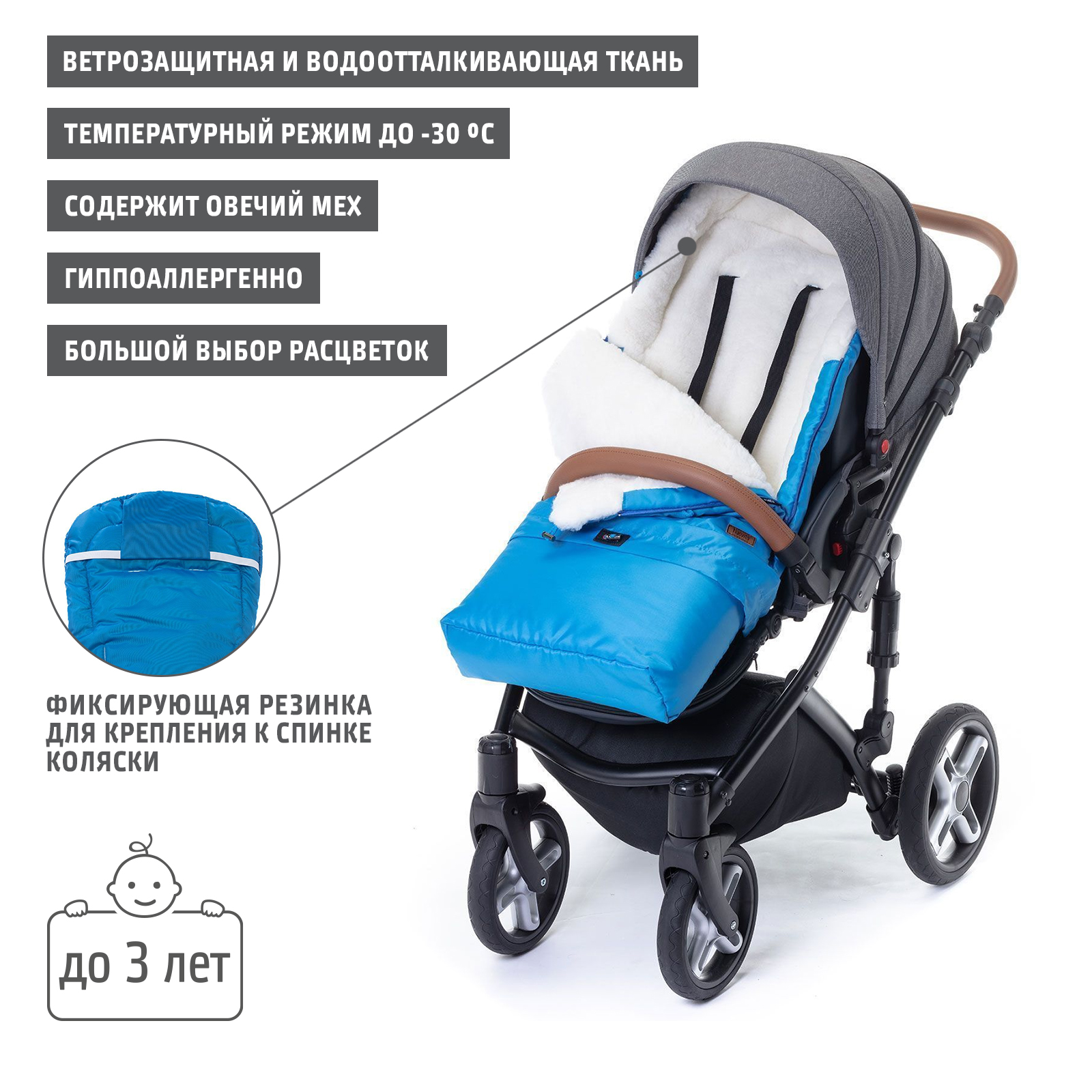 - Нескользящая ткань на нижней части конверта Нет