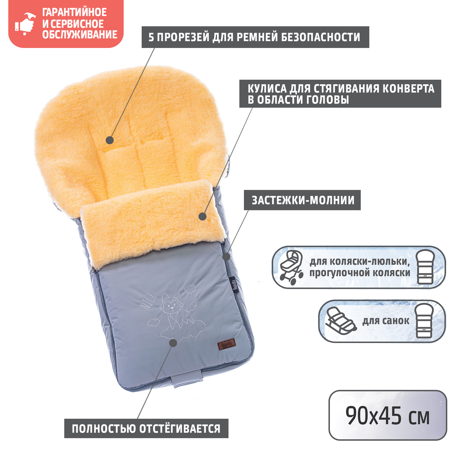 - Нескользящая ткань на нижней части конверта Нет