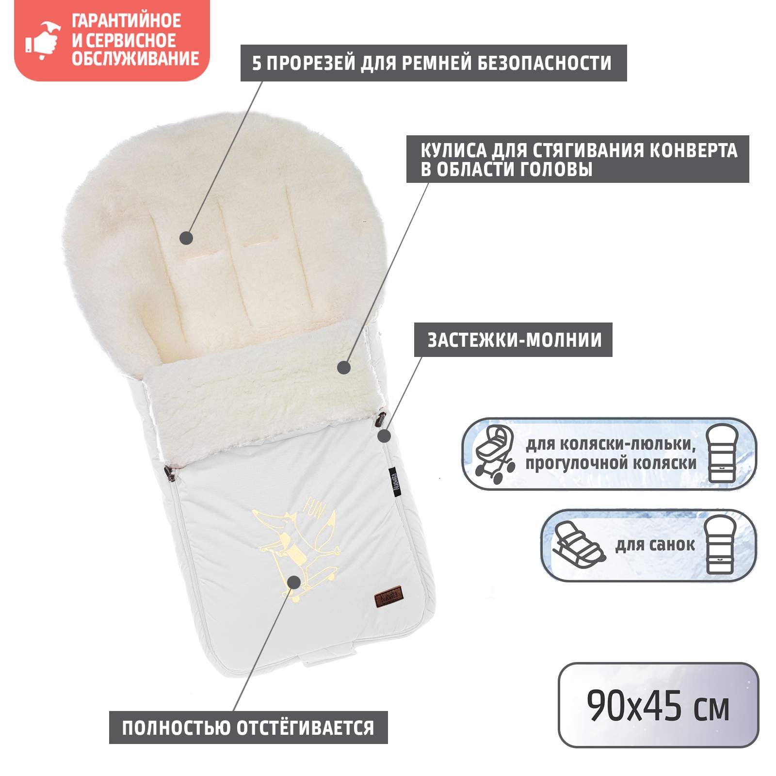 - Нескользящая ткань на нижней части конверта Да