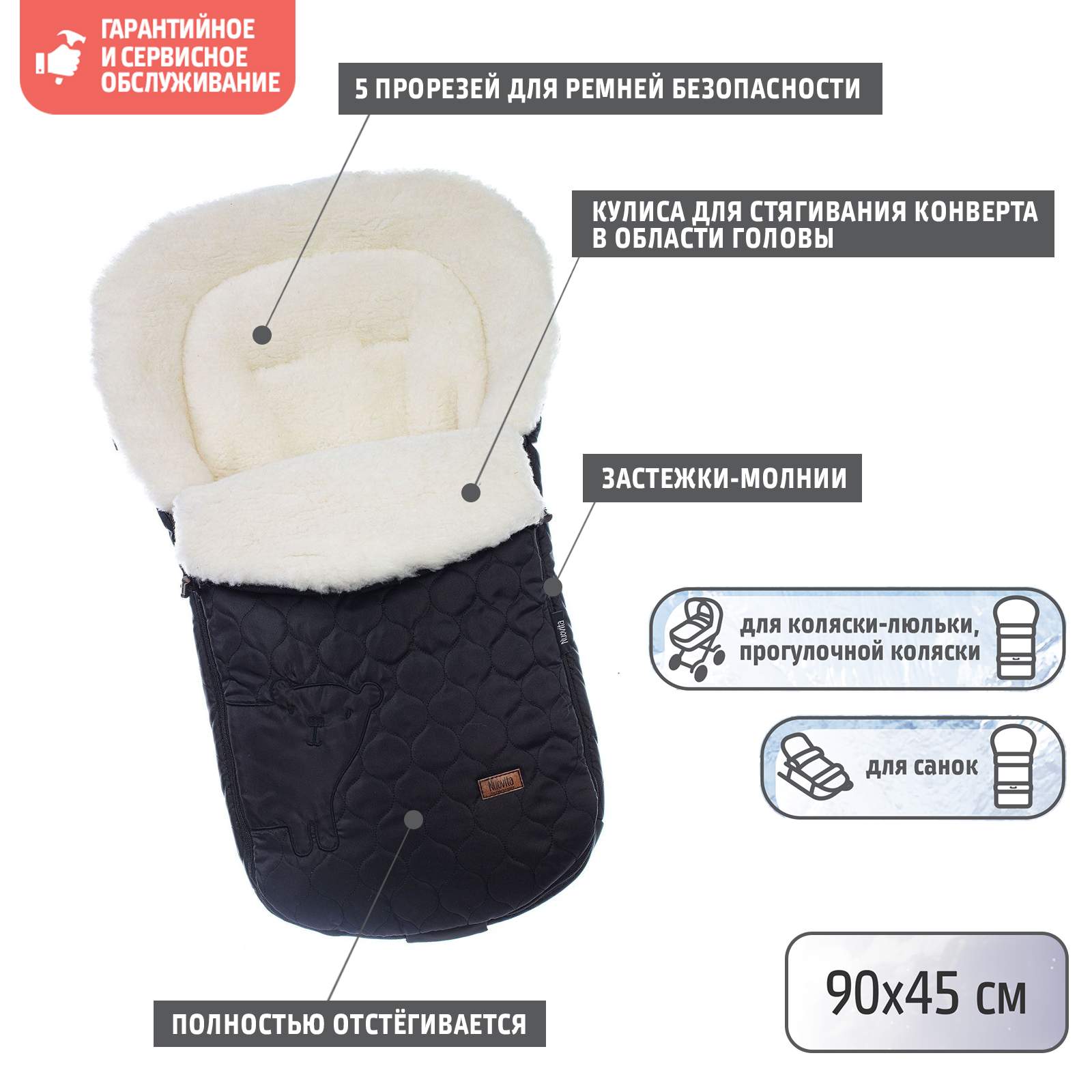 - Нескользящая ткань на нижней части конверта Нет