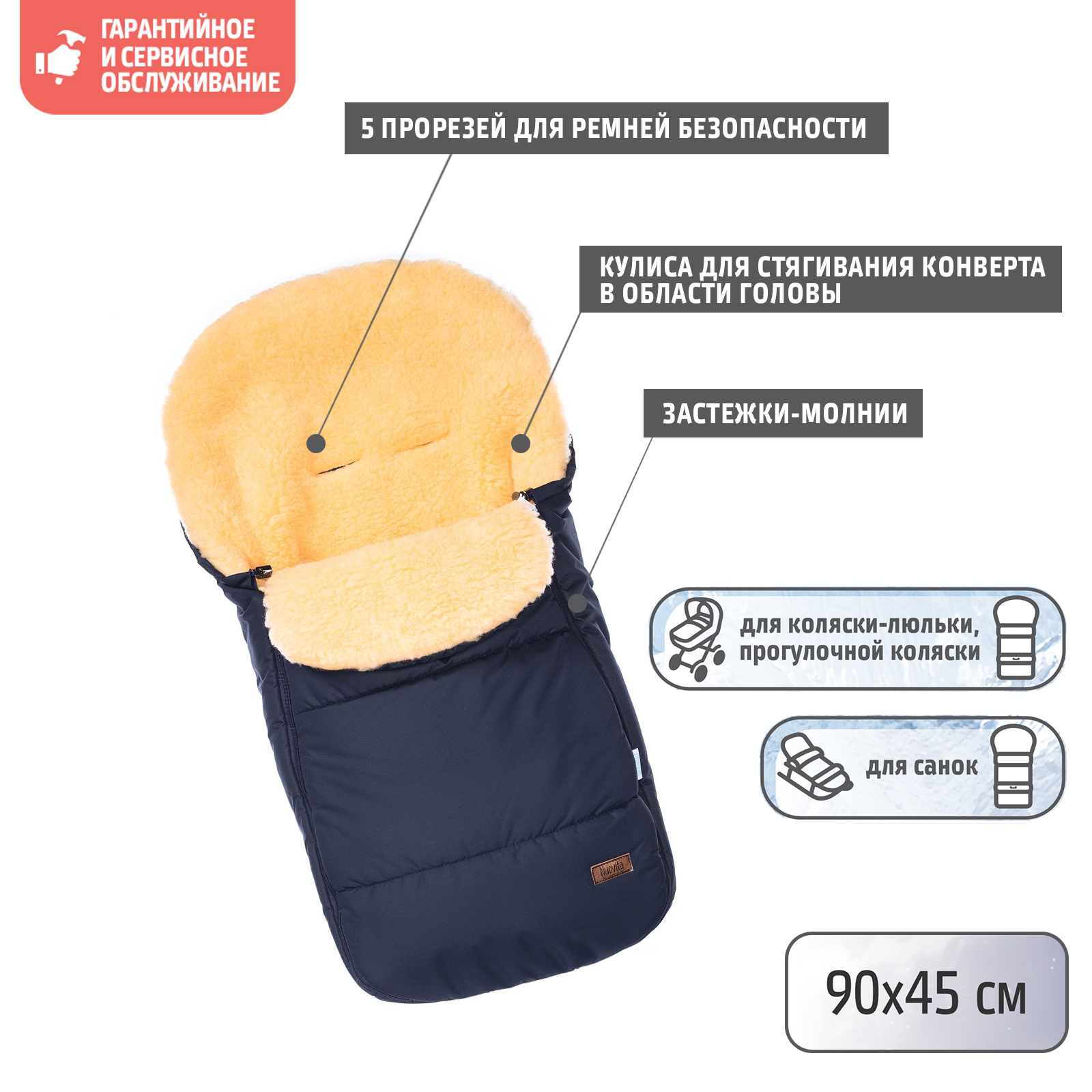 - Нескользящая ткань на нижней части конверта Нет