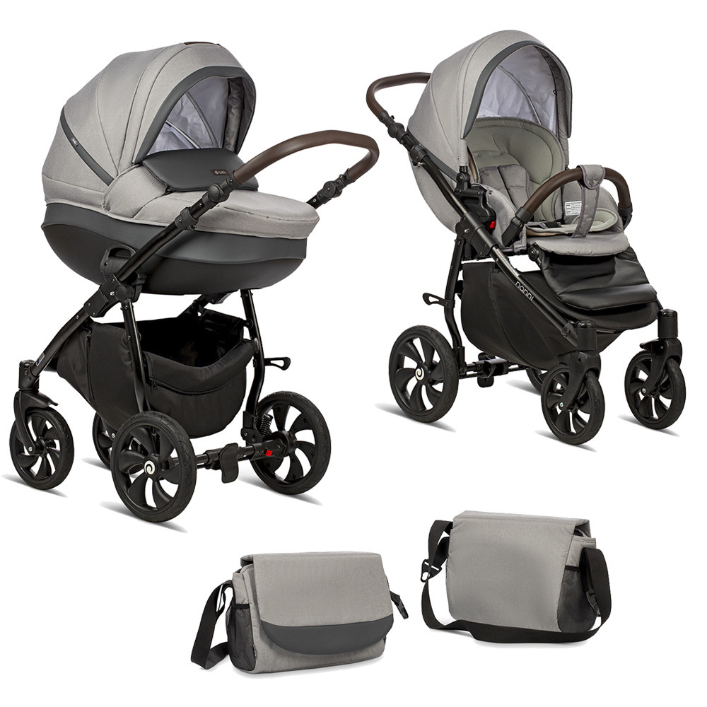 - Комплектация коляски дождевик; люлька; матрасик; москитная сетка; сумка; сумка для мамы; шасси с колесами