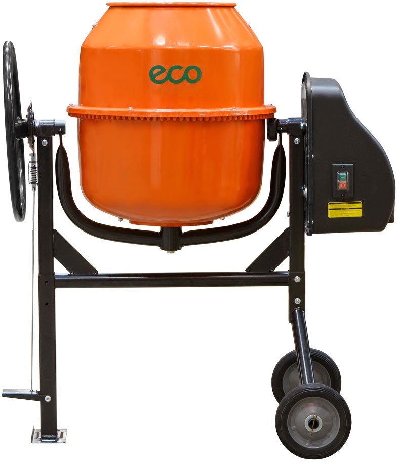 ОписаниеБетономешалка ECO CMA-200 оснащен асинхронным двигателем с термозащитой. Опрокидывание барабана осуществляется с помощью педали. Наличие выключателя с защитой от случайного запуска при отключении электричества. Для транспортировки предусмотрены широкие металлические колеса. Материал венца: чугун.