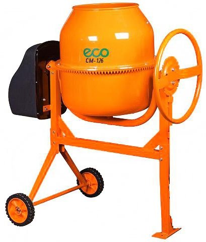 - Описание Бетоносмеситель ECO CM-126 (CM-126) применяется на небольших стройплощадках, где не выгодно или нет возможности организовать прямые поставки готового бетона. Служит для смешивания сухих строительных смесей с целью приготовления цемента или бетона. Стальной прочный корпус бетономешалки покрыт толстым слоем защитной эмали, что повышает коррозионную стойкость оборудования. Зубчатая передача выполнена из чугуна и исключает возможность стирания зубьев. Ременной привод защищает электромотор от перегорания в следствии перегрузок. Для удобства транспортировки конструкция оснащена колесами.