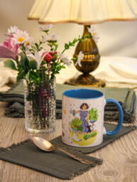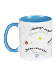 "Чудесного настроения, мама": кружка голубая с сублимацией (мама с лейкой)