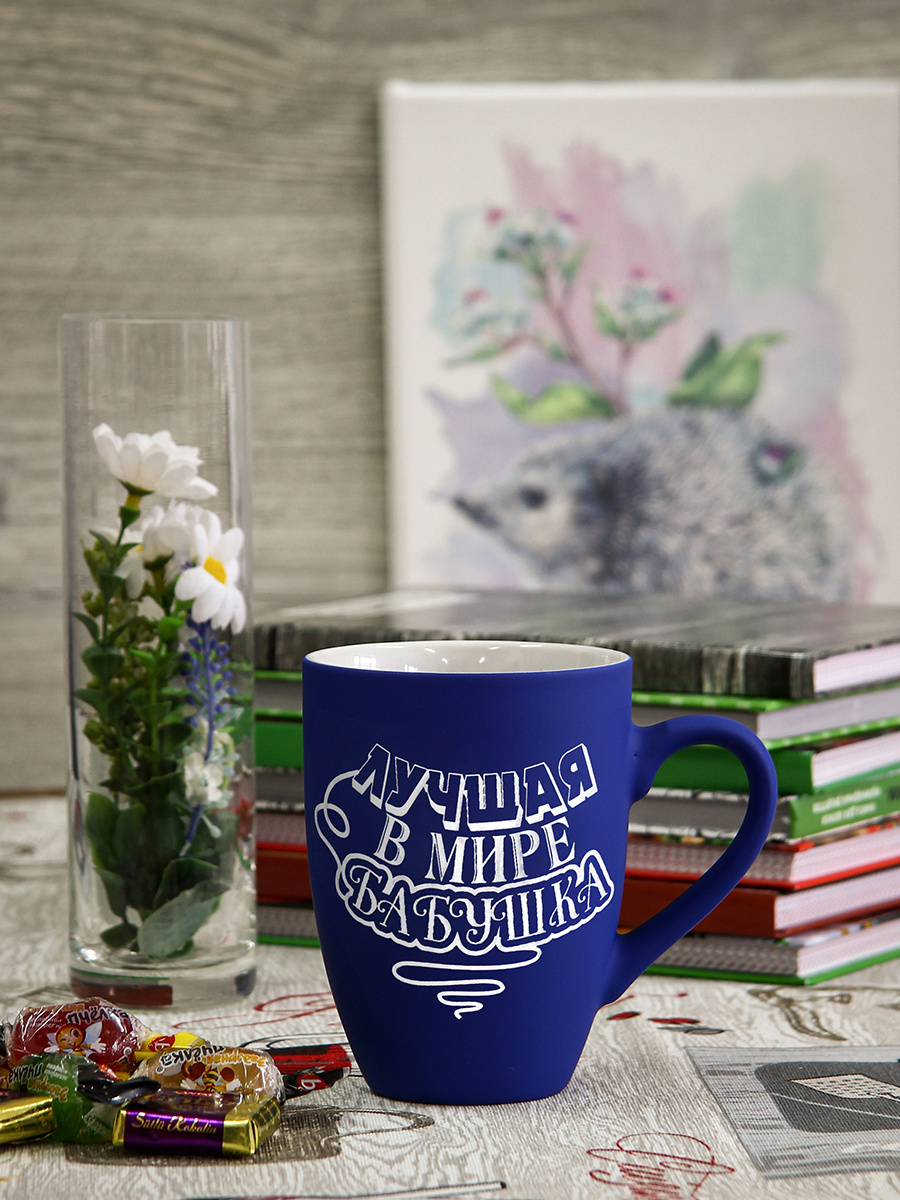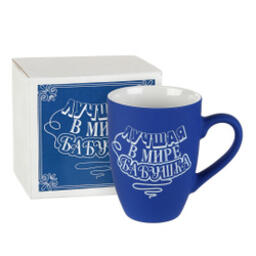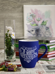Подарочная кружка Soft touch синяя с гравировкой "Лучшая в мире бабушка"