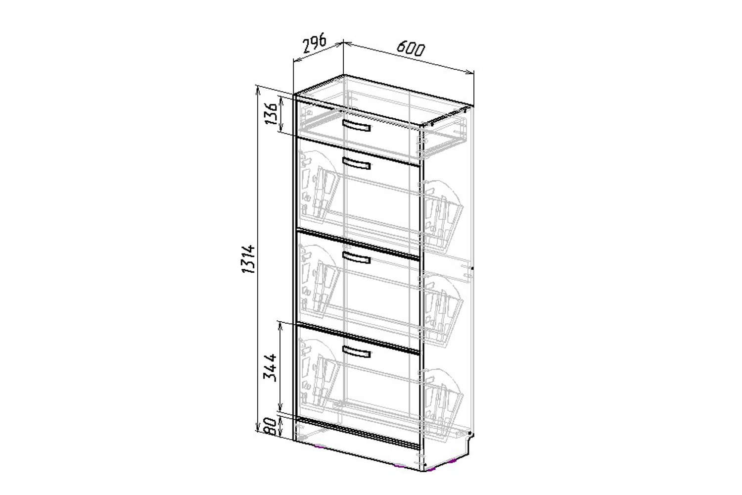 - Размеры (ШхГхВ), в сантиметрах 60х29,6х131,4