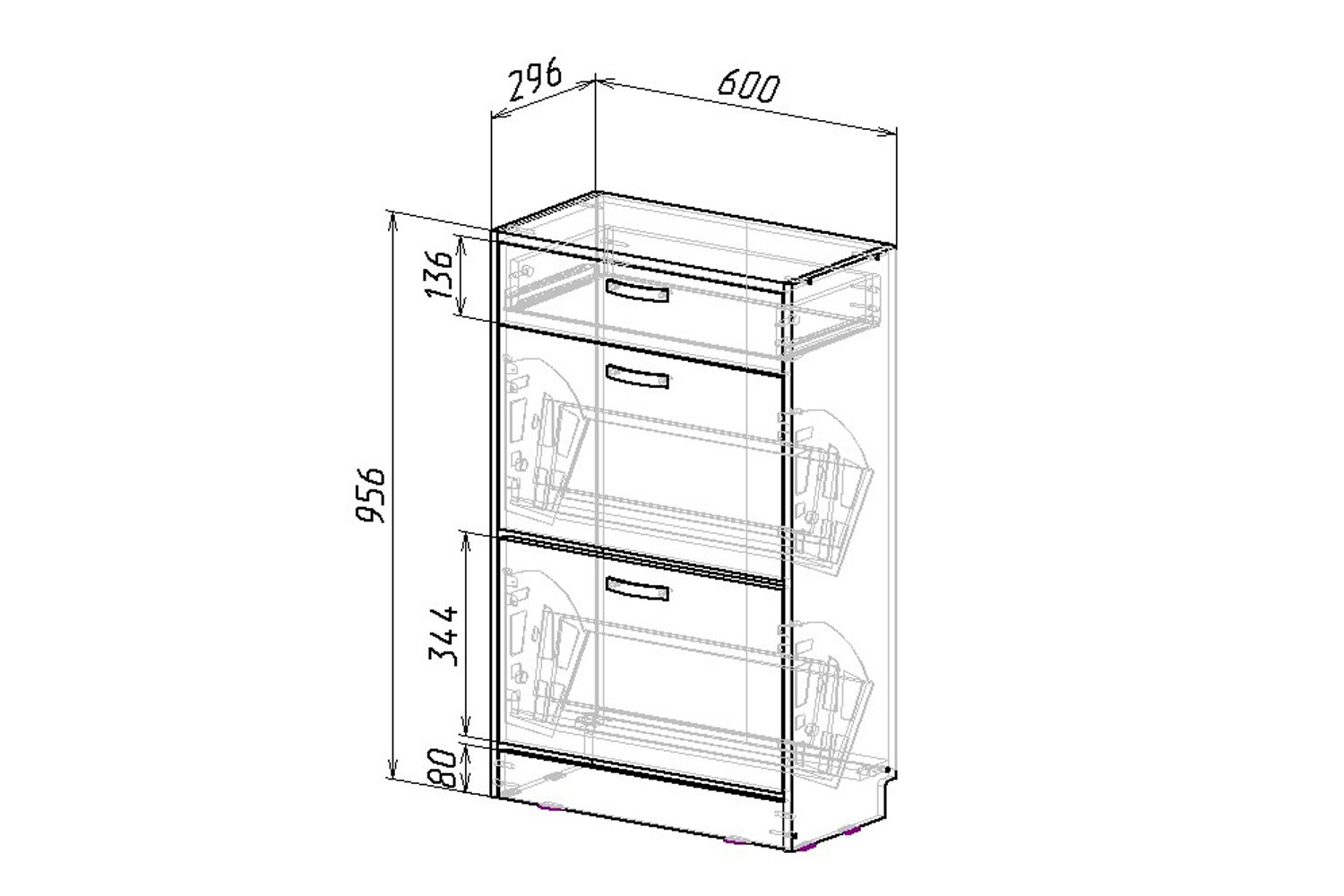 - Вид дверец откидные