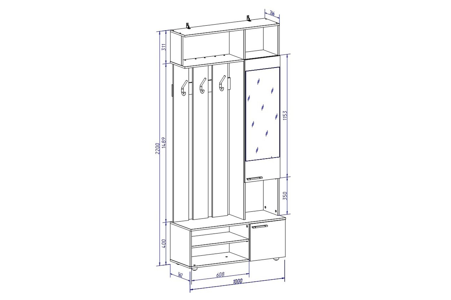 - Размеры (ШxГxВ), в сантиметрах 100х38х220