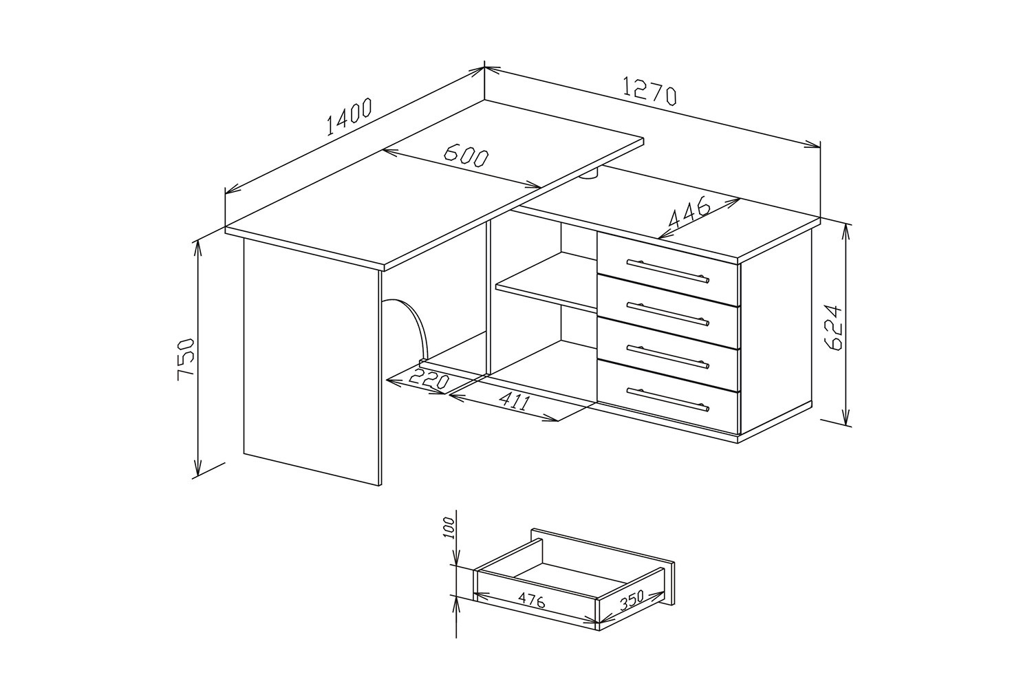 - Ниша для системного блока под столешницей Да