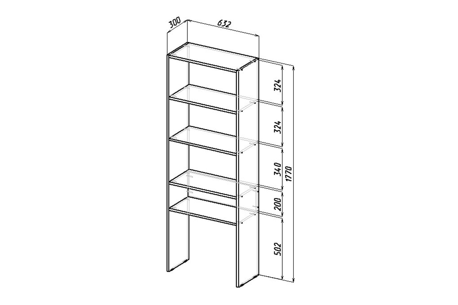 - Размеры (ШxГxВ), в сантиметрах 63,2х30х177