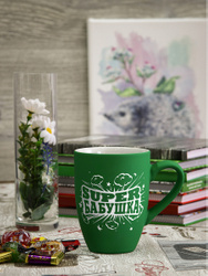 Подарочная кружка Soft touch зеленая с гравировкой "Супер бабушка"