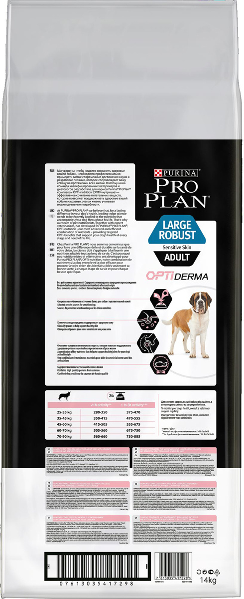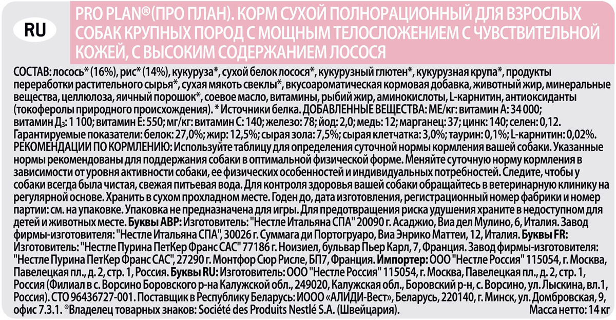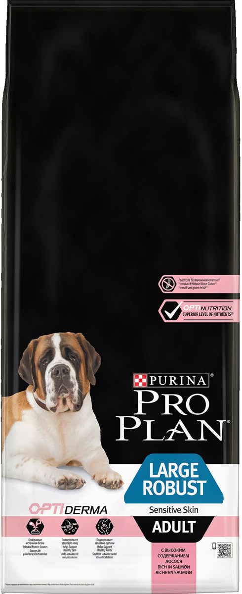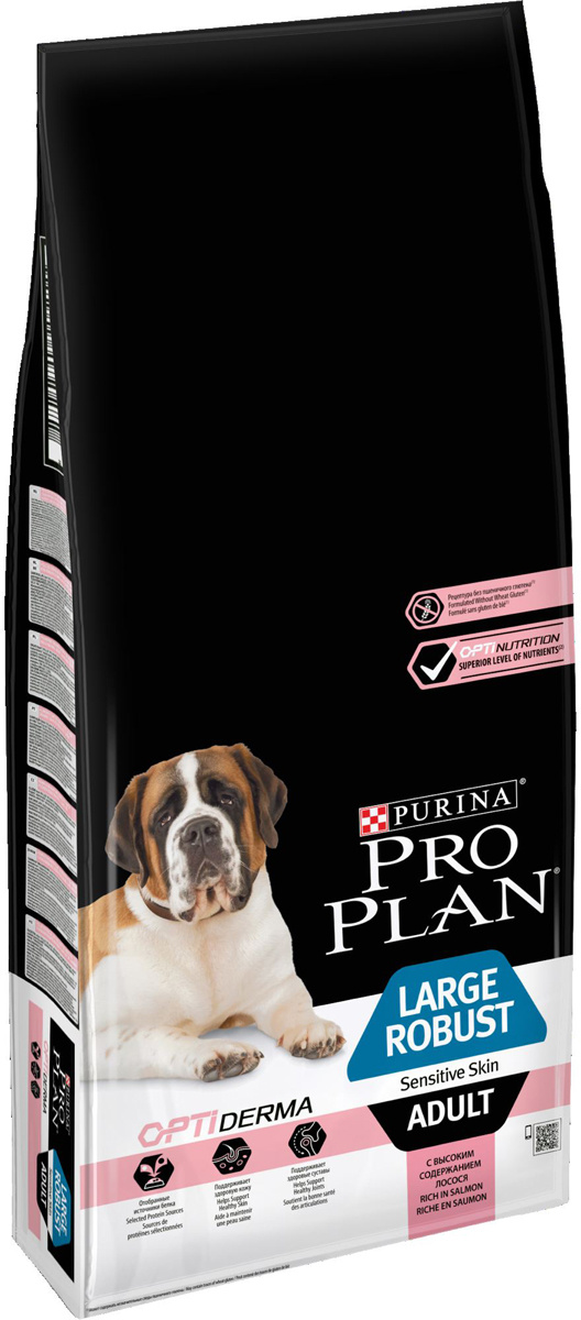 Корм сухой Pro Plan "Adult Sensitive", для взрослых собак крупных пород мощного телосложения и с чувствительной кожей, с лососем, 14 кг