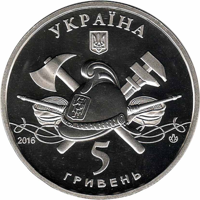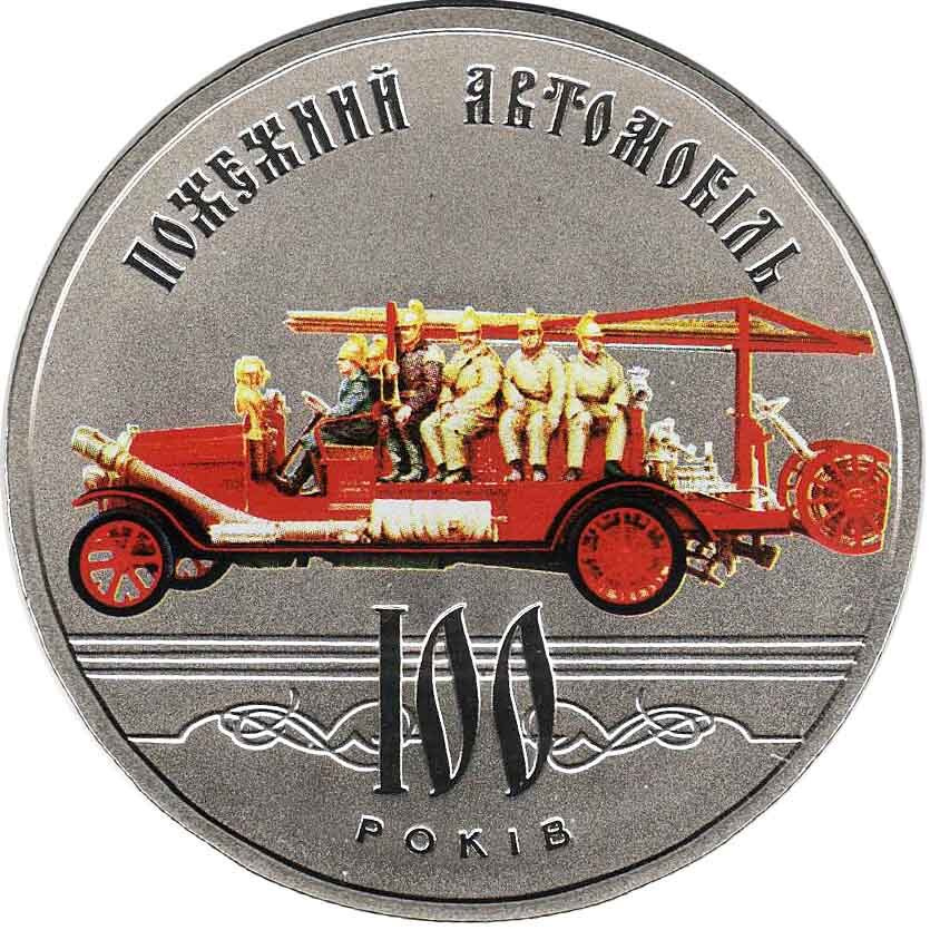 (139) Монета Украина 2016 год 5 гривен "Пожарный автомобиль" PROOF