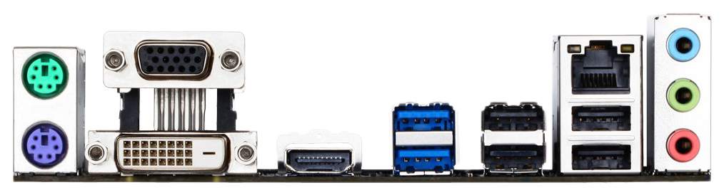 - Разъемы на задней панели I/O USB 2.0 - 4; USB 3.1 - 2; PS/2 - 2; VGA - 1; DVI - 1; HDMI - 1
