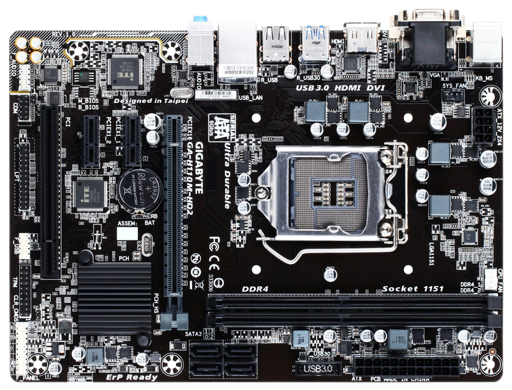 - Количество и тип слотов расширения PCI-e x1 - 2; PCI-e x16 - 1; PCI - 1