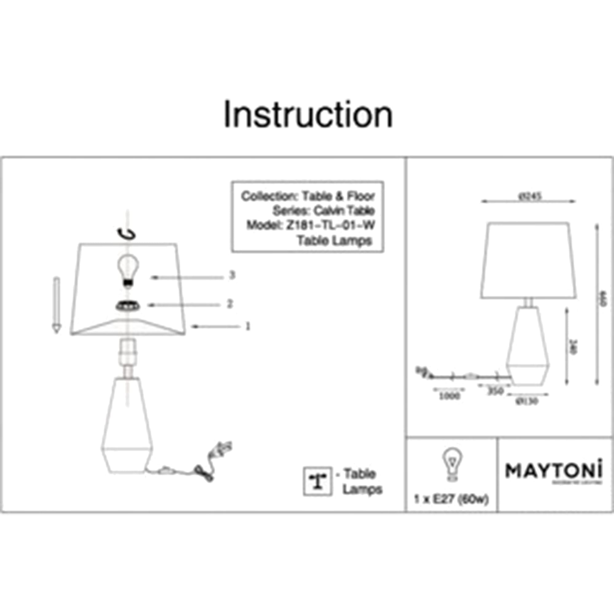 Лампа настольная рабочая Maytoni Calvin Table Z181-TL-01-W цвет белый