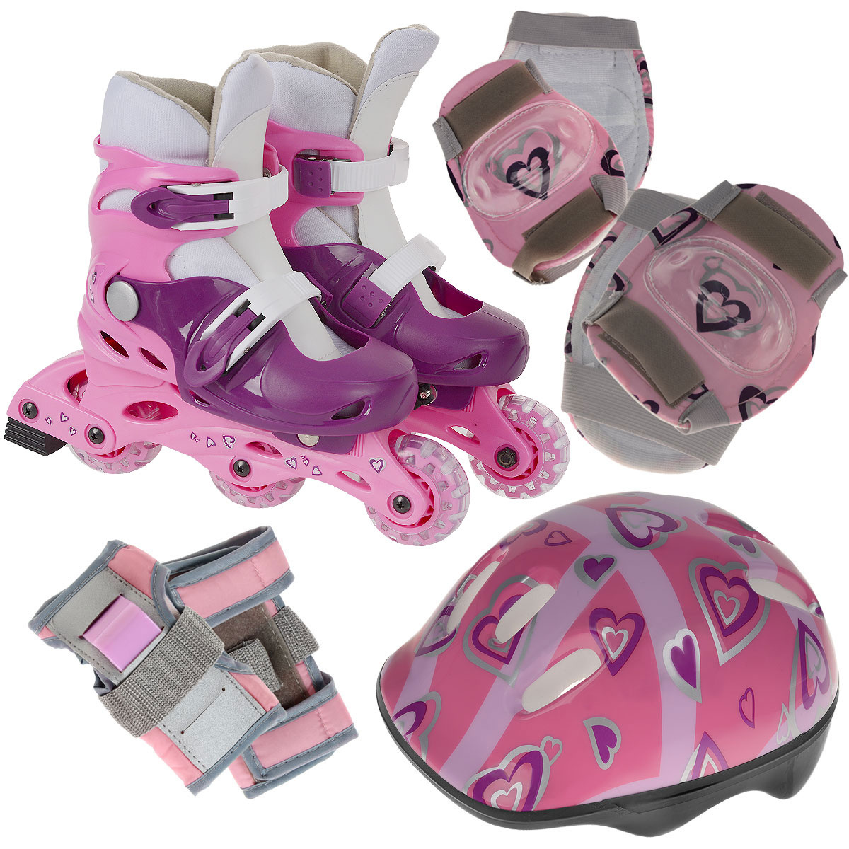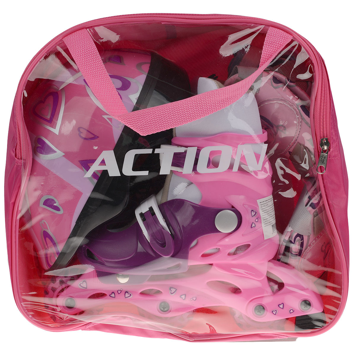 Набор "Action": коньки роликовые, защита, шлем, цвет: розовый. PW-120P. Размер 35/38