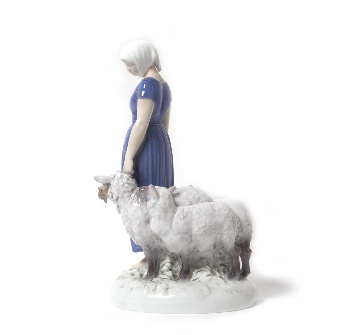 Фарфоровая фигура "Девушка с парой овец". Дания, город Копенгаген, Bing & Grondahl