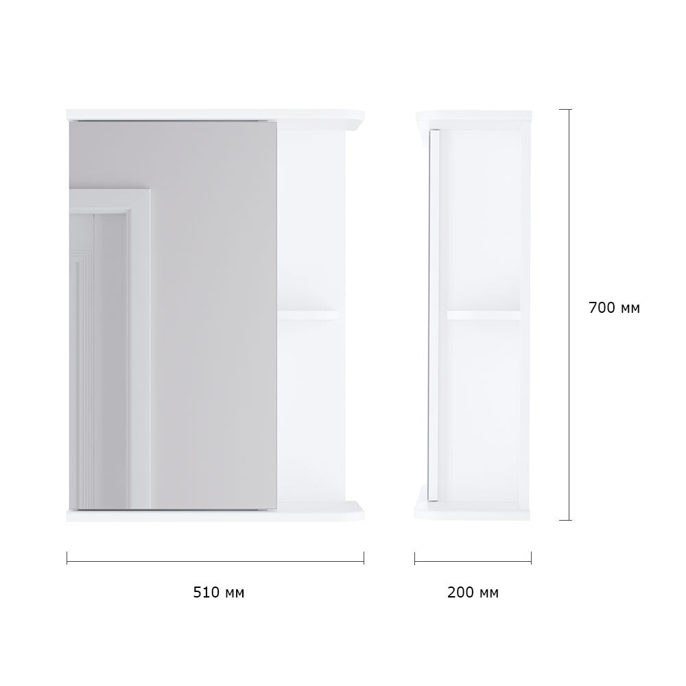Зеркало с полкой и шкафом "ИТАНА" Поло 50 левое