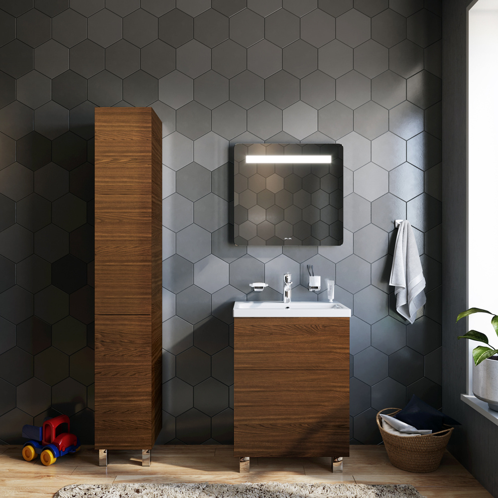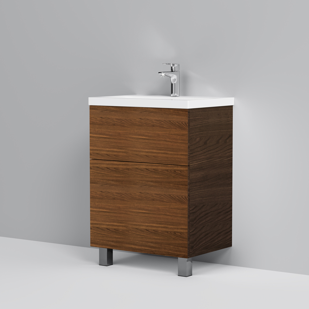 Тумба под раковину напольная AM.PM GEM M90FSX06022NF32 60 см, 2 ящика push-to-open, цвет орех