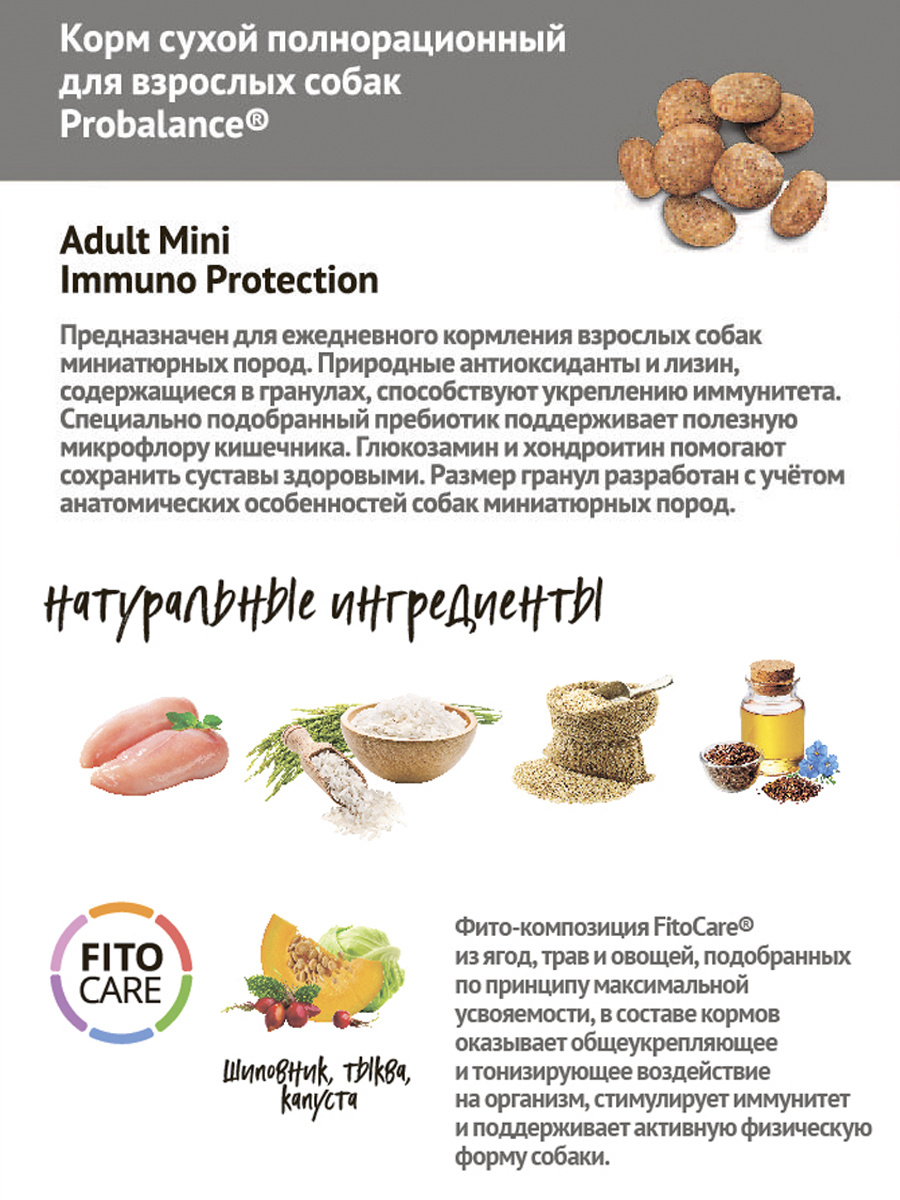 Сухой корм для собак миниатюрных пород Probalance Immuno Adult Mini, защита иммунитета, 14 шт. х 500 г