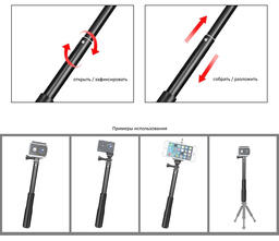 Монопод для селфи для GoPro и других экшн камер, фотоаппаратов NOVELEKA 96 см