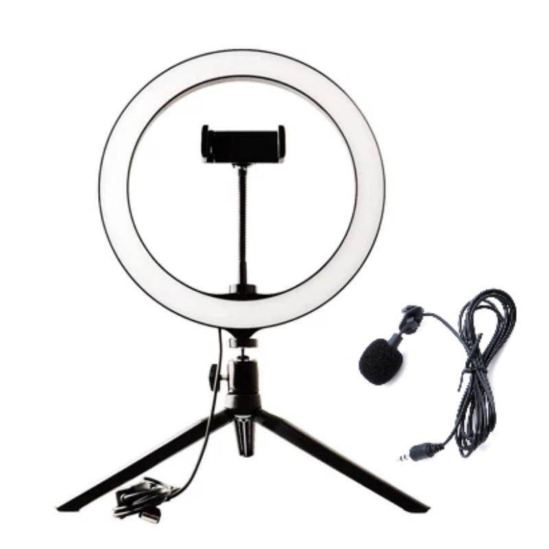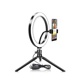 Световое кольцо LED для селфи и видео с настольным штативом и держателем для смартфона (26 см), черного цвета