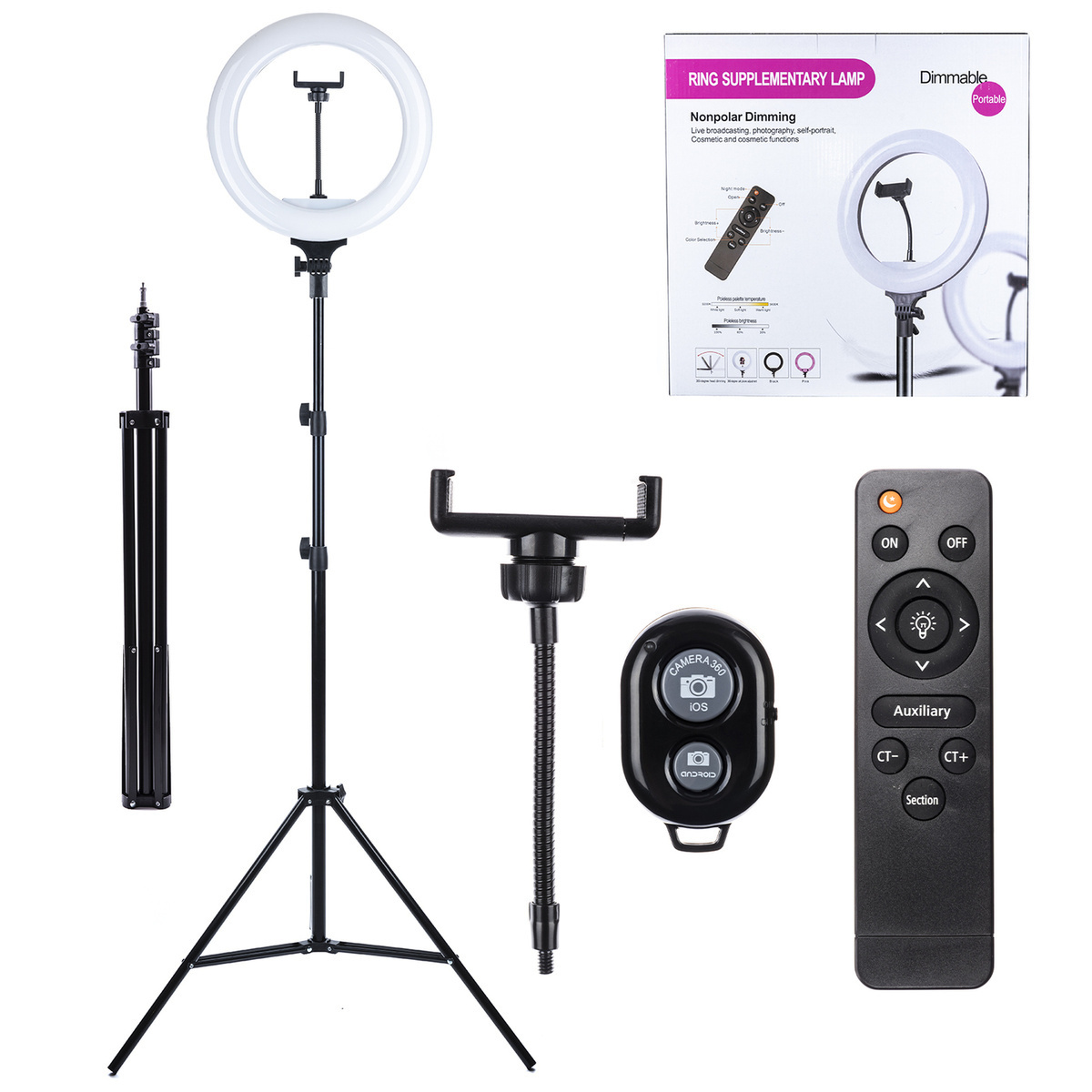 Кольцевая светодиодная лампа 33 см со штативом для профессиональной съемки с пультом