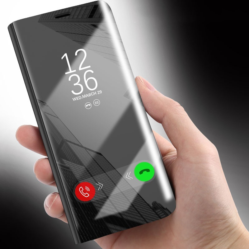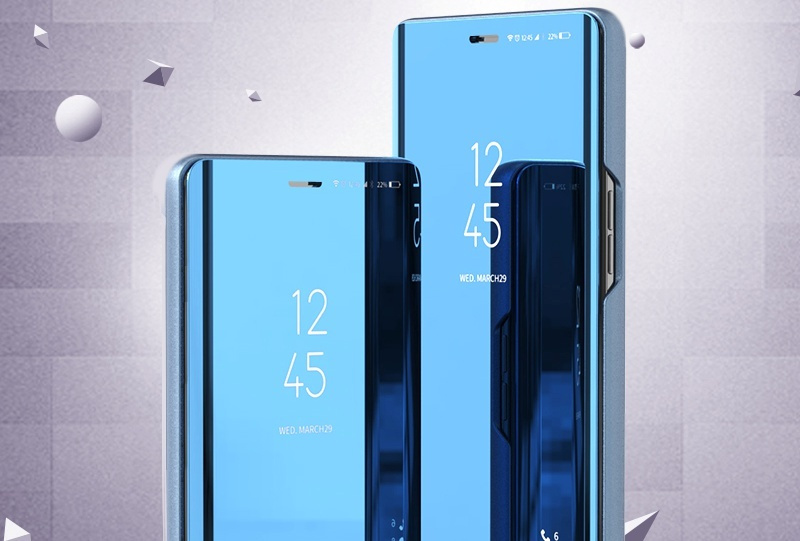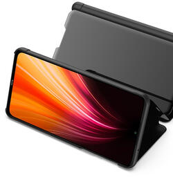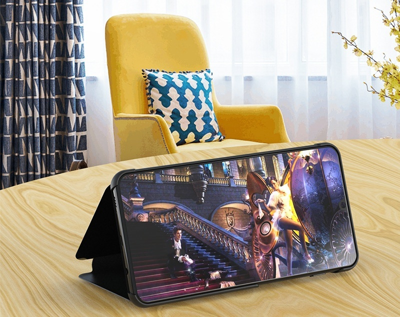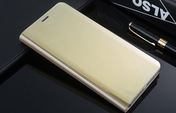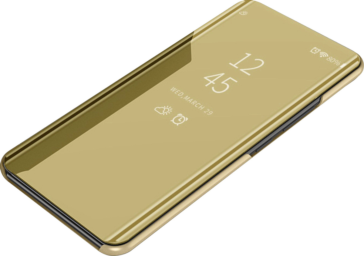 Чехол-книжка MyPads для Xiaomi Redmi 8 с дизайном Clear View Cover с полупрозрачной пластиковой крышкой с зеркальной поверхностью золотой