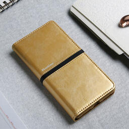 Чехол-книжка MyPads для ZTE Blade A7 2020 водоотталкивающий с мульти-подставкой на жесткой металлической основе золотой с черной полосой
