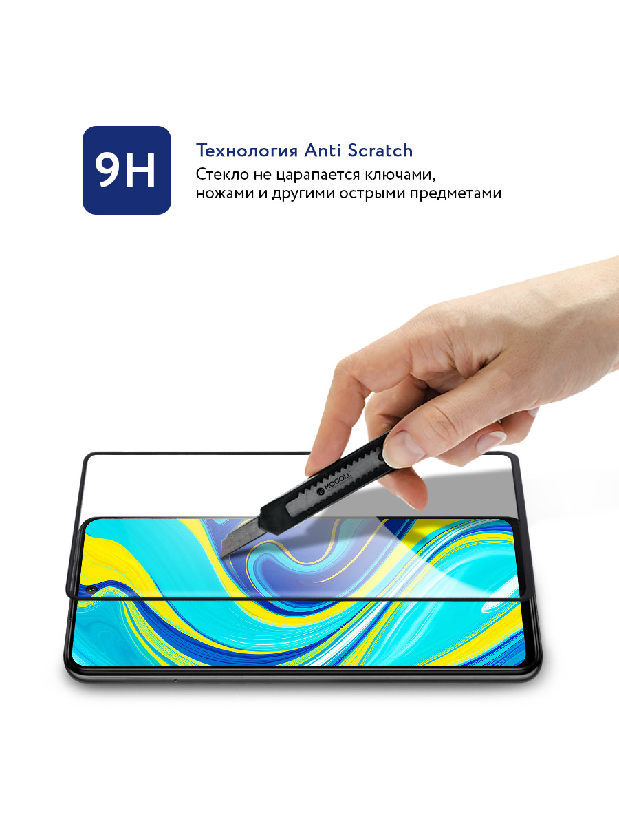 Защитное стекло MOCOLL полноразмерное 2.5D для Xiaomi Redmi Note 9S / Redmi Note 9 Pro / Poco F2 / Xiaomi Redmi K30 / Samsung A71 Черное (серия Storm)