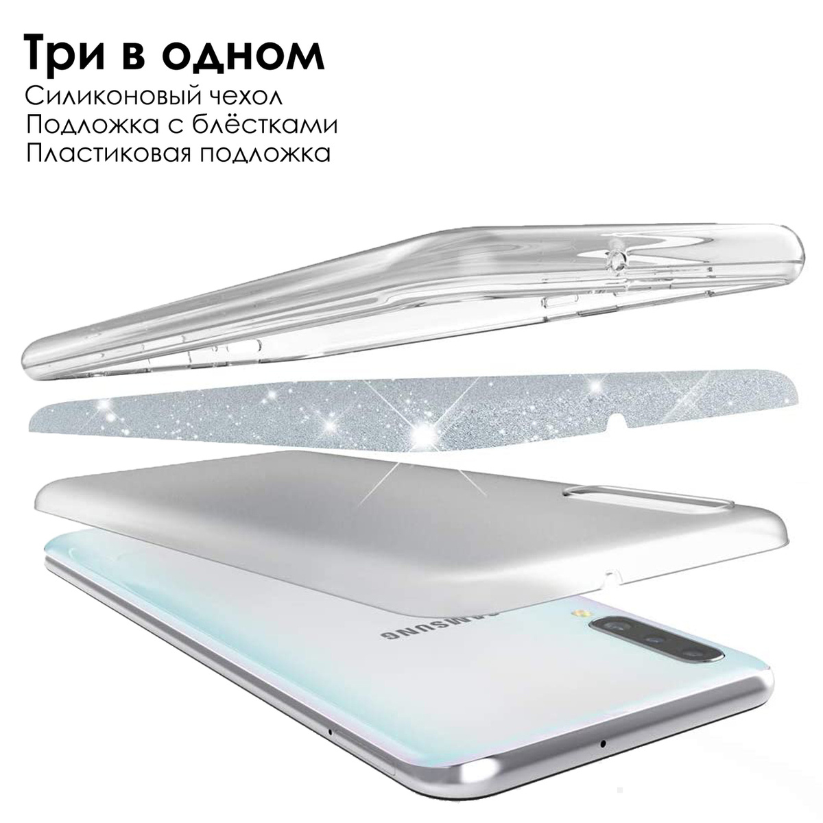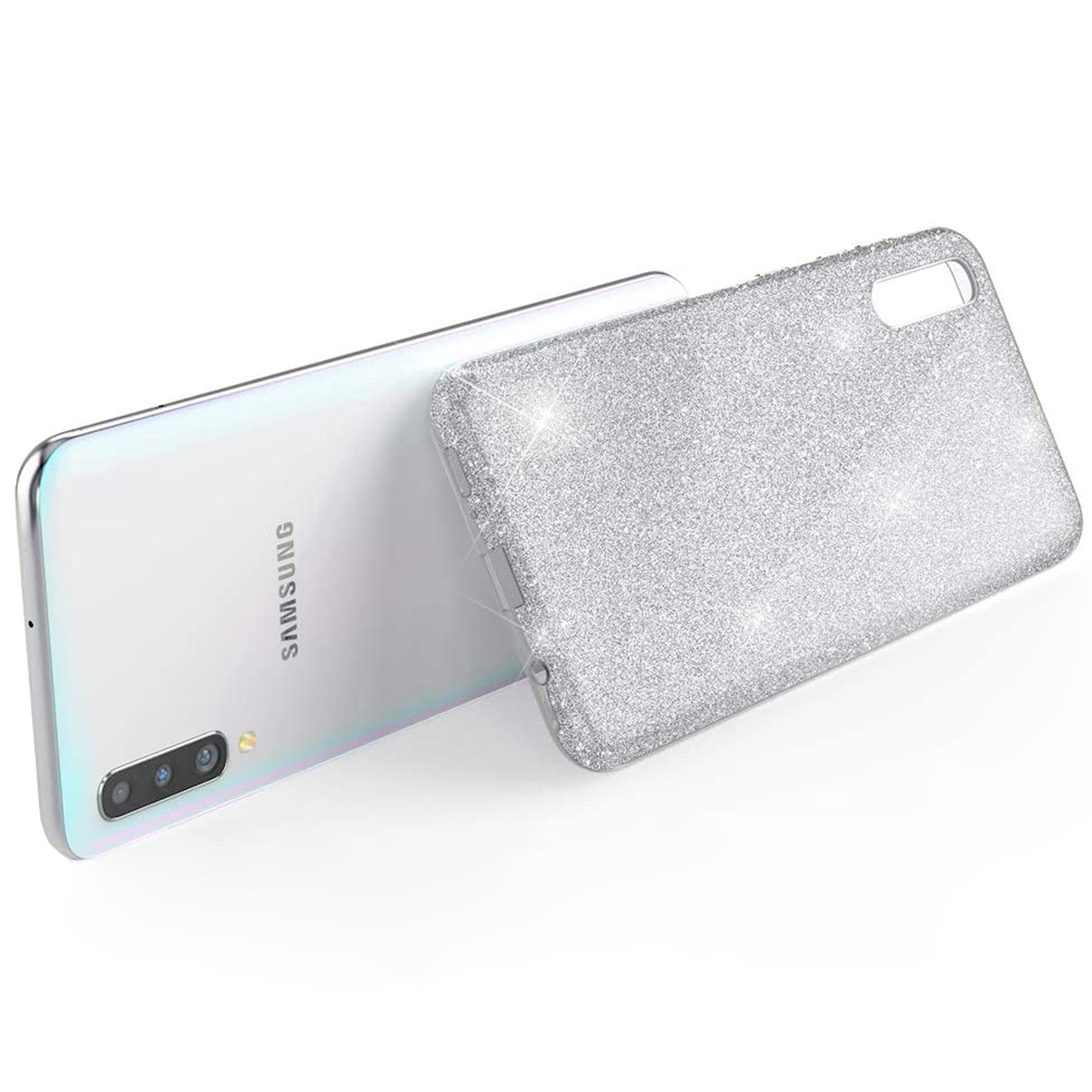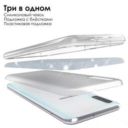 Блестящий чехол для Samsung Galaxy A50 и Galaxy A30s (Самсунг Галакси А50 и А30с), серебряный