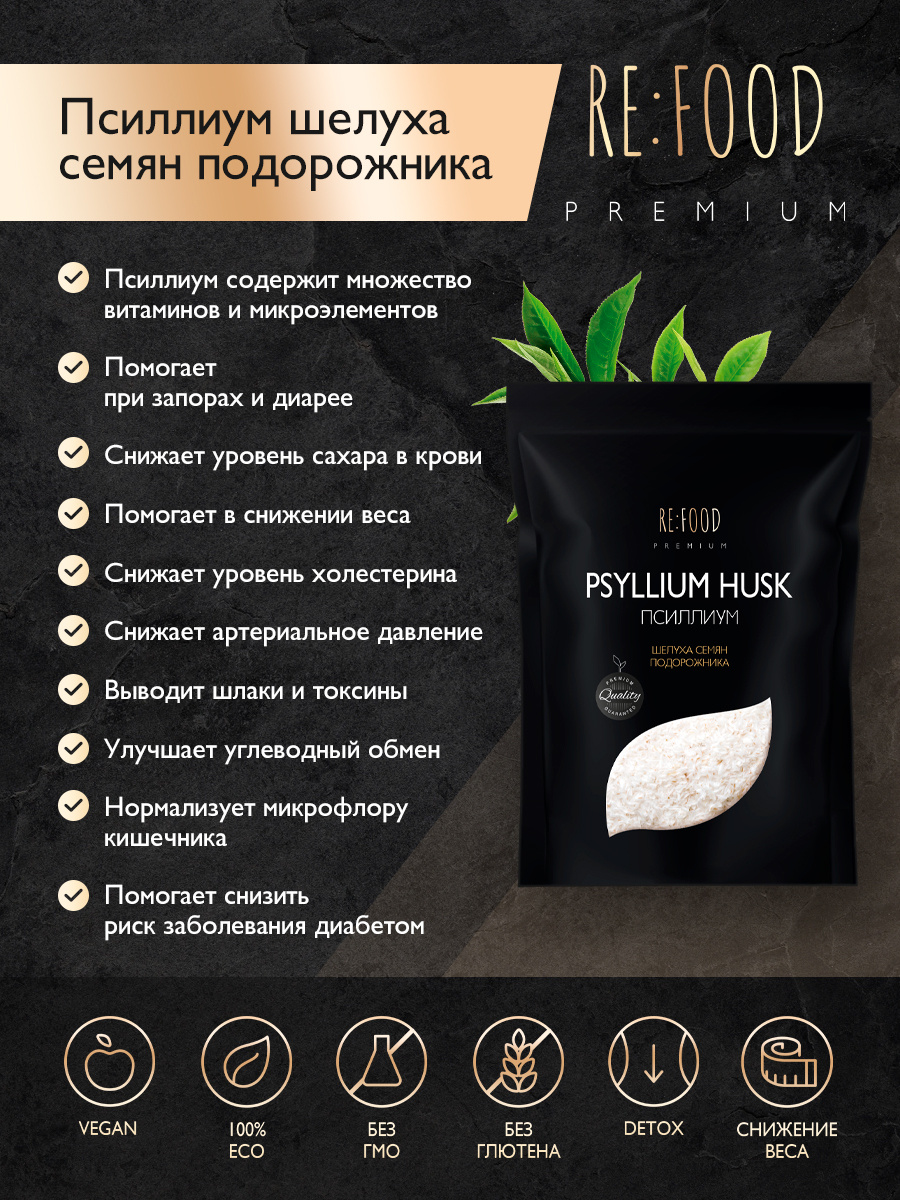 - Состав 100% шелуха семян подорожника (псиллиум)