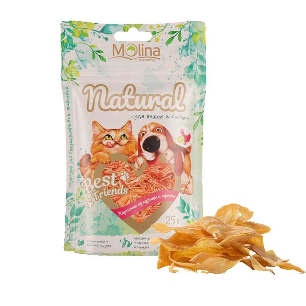 - Ингредиенты курица - 75,8%, треска - 18%, пищевые добавки - 4%, крахмал - 2%, соль - 0,2%