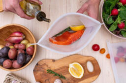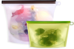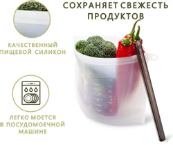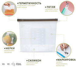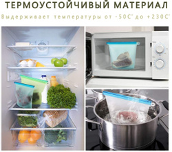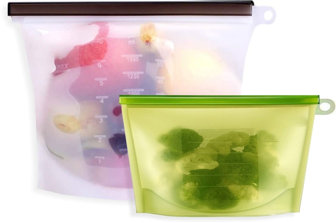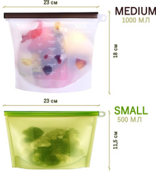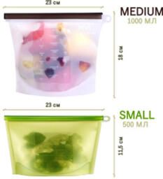 Многофункциональный набор силиконовых пакетов для продуктов Eco-Room 1000мл и 500мл. Герметичные пакеты-контейнеры для хранения, приготовления и заморозки продуктов с фиксатором Ziplock и подвесным кольцом.