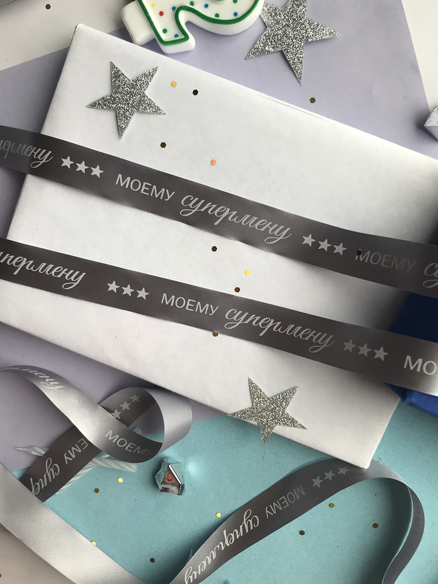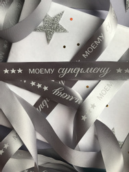Лента упаковочная, бант для подарка, с надписью "Моему супермену",5м/20мм