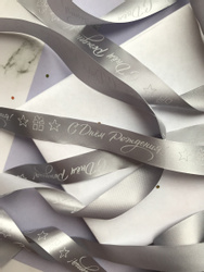 Лента упаковочная, бант для подарка, с надписью "С днем рождения". 5 м на 20 мм