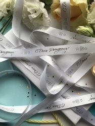 Лента упаковочная, бант для подарка, с надписью "С днем рождения",5 м/15мм