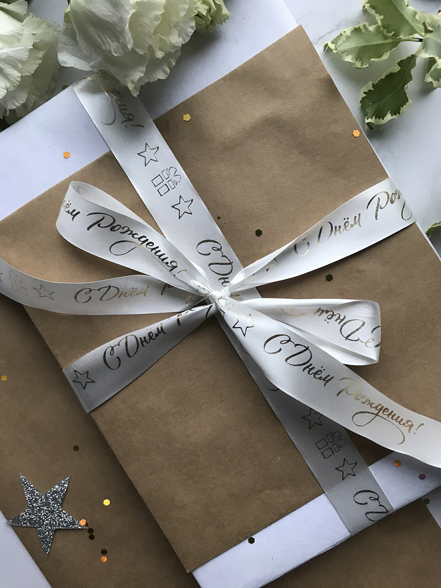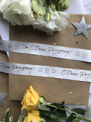 Лента упаковочная, бант для подарка, с надписью "С днем рождения",5 м/20мм
