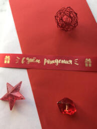 Лента упаковочная, бант для подарка, с надписью "С днем рождения",5 м/20мм.