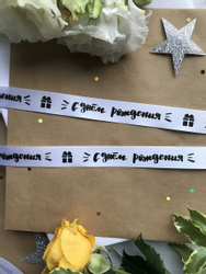 Лента упаковочная, бант для подарка, с надписью "С днем рождения",5 м/15мм